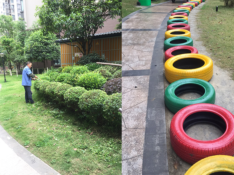 降低費(fèi)用、提升品質(zhì),物業(yè)的能工巧匠們用行動(dòng)踐行著他們的使命。在綠化邊緣筑起隔離帶,防止雨水濺起泥垢;利用刷漆的廢舊輪胎種上各類(lèi)綠植,在各小區(qū)形成一道道別致的景觀。