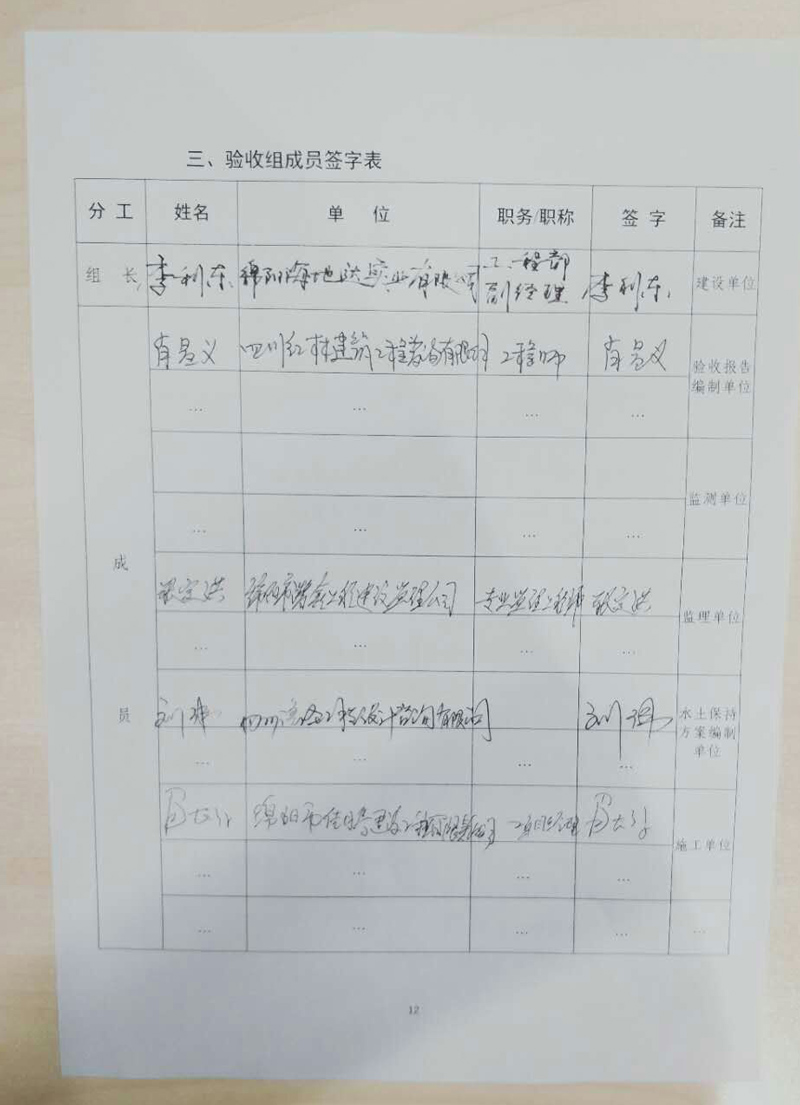 驗收組認(rèn)為:綿陽海地達(dá)實業(yè)有限公司在工程建設(shè)中比較重視水土保持工作,落實了水土保持工程設(shè)計和建設(shè)資金,有效地防治了水土流失。對建設(shè)期防治責(zé)任范圍內(nèi)的水土流失進(jìn)行了較全面、系統(tǒng)的治理,工程的開挖(填筑)面、臨時施工跡地等基本得到了整治,采取了攔擋及植被恢復(fù)措施,施工過程中的水土流失得到了有效控制。水土保持設(shè)施總體達(dá)到了國家水土保持法律法規(guī)及相關(guān)技術(shù)規(guī)程規(guī)范、標(biāo)準(zhǔn)要求,質(zhì)量合格。同意通過竣工驗收,正式投入運行。